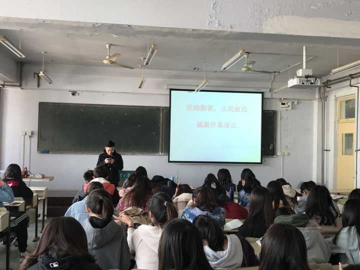 现如今,越来越多大学生把熬夜、赖床、点外卖等不健康的生活方式当成家常便饭,随之而来的健康负面新闻常常引起大家的广泛关注。为此专业学生会提出帮助同学们认识不良习惯的危害性,倡导健康作息、快乐生活的活动策划案。3月23日,宣传组负责人于炜杰在教学区主持召开宣传工作部署会,会议确定首个宣传活动主题为“认识熬夜危害”,并传达《对全体同学发出的健康作息倡议书》,提出“十点上床,十点半进入梦乡”的目标口号。