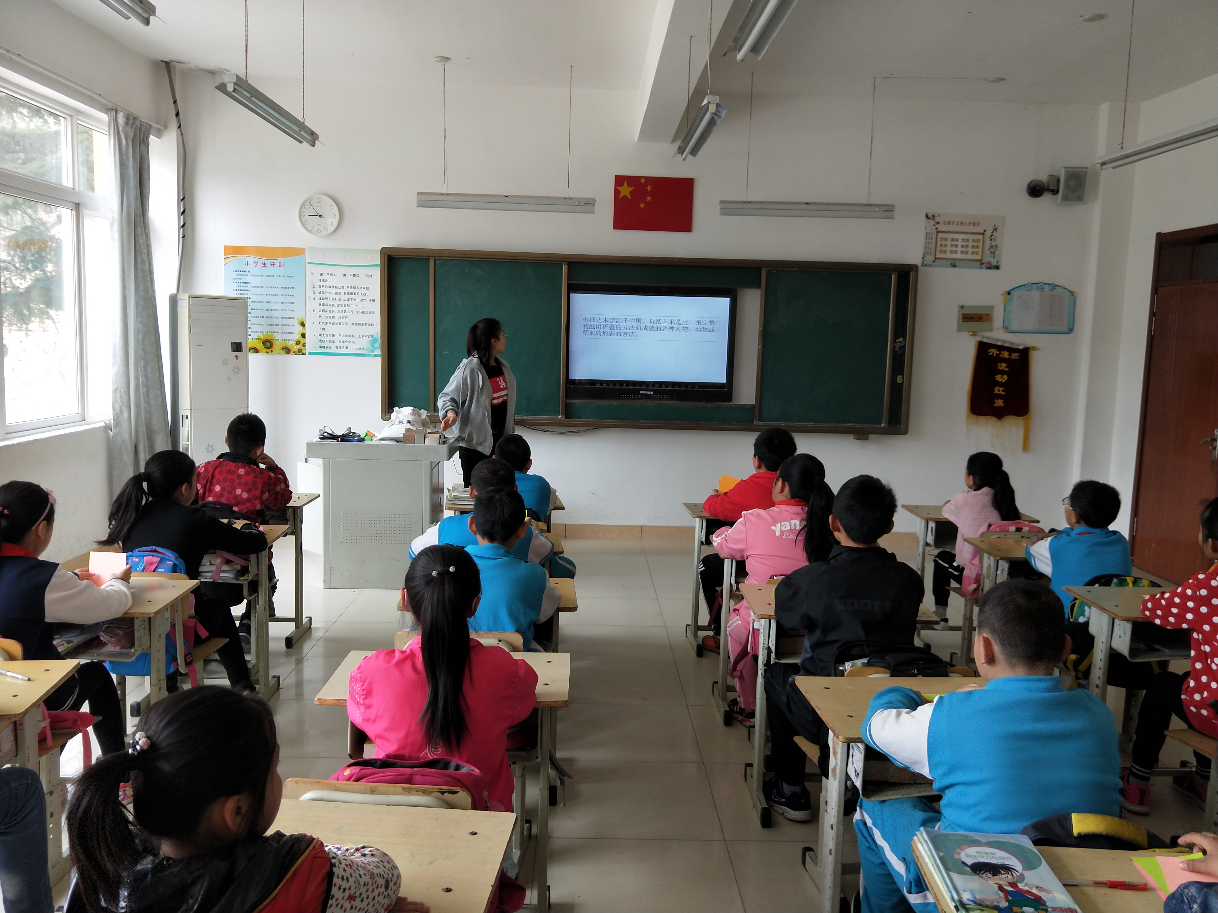 此次支教内容分包含课程学习、动手操作、成果展示三个部分。支教队员首先用PPT带领学生了解折纸的来源、折纸的发展史、身边的折纸等内容,生动形象的PPT配上支教队员幽默活泼的授课方式让同学们对接下来的课程产生了浓厚的兴趣。