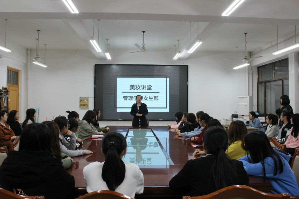 10月20日,由管理学院女生部主办的“彩妆培训讲堂”于文经楼拉开帷幕,我院辅导员张洁老师到场。此次“美妆课堂”活动旨在解决大一新生缺乏正确的化妆认识问题,本次活动由女生部冯卉主持,管理学院部分女生与会。