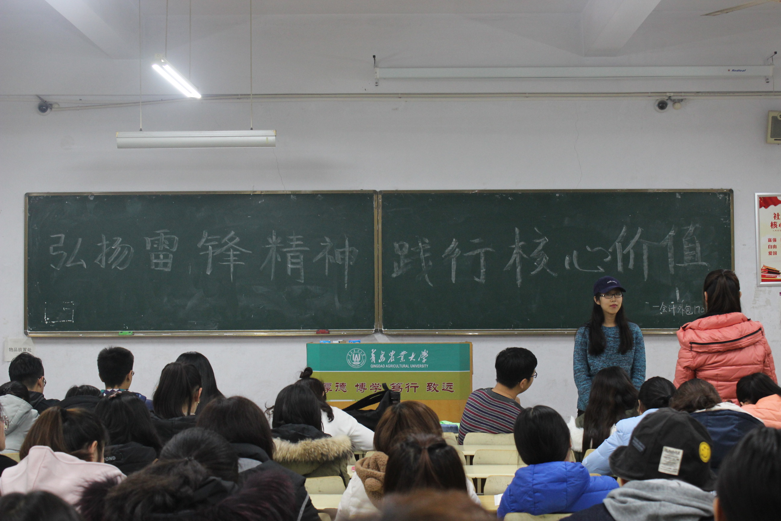 “人的生命是有限的,可是为人民服务是无限的,我要把有限的生命,投入到无限的为人民服务之中去”,朗朗的读书声中,团课拉开序幕。各班班级负责人向同学们介绍了学雷锋日的由来以及当代大学生为什么要学雷锋等问题,加深了同学们对于此次活动的了解。同学们深有感触并纷纷发表自己的感想,经管1701宫笑笑说:“学雷锋做好事不分大小,只论作为;涓滴成海,众木成林”。