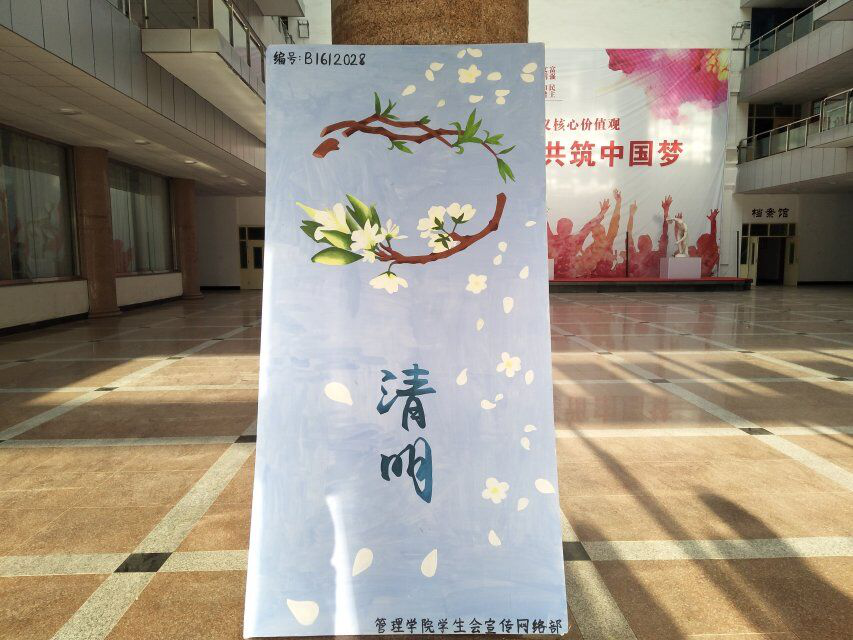 4月8日,太阳成集团官网管理学院学生会宣传网络部完成的清明节主题展板于文经楼大厅展出。