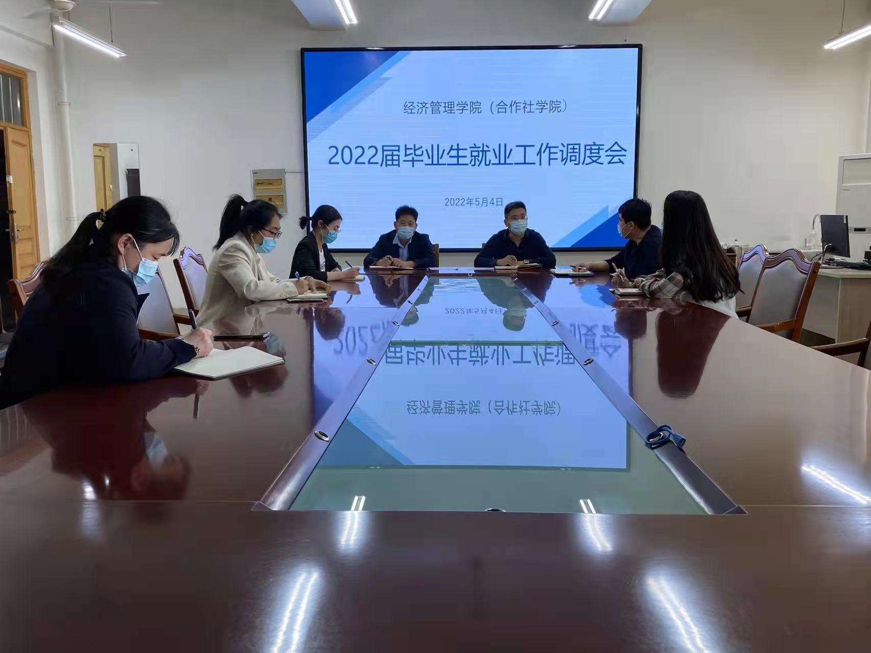5月4日,太阳成集团tyc234cc在文经楼A420室召开2022届毕业生就业工作调度会。学院党委书记张德锋,院长李敬锁、学团干部、就业工作相关人员参加会议。
